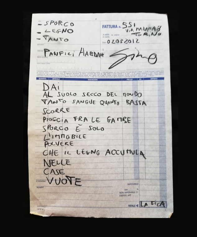Il supporto è quello di un registro commerciale: l’originale viene consegnato al destinatario, mentre la copia carbone rimane all’artista, conservata nel registro stesso.