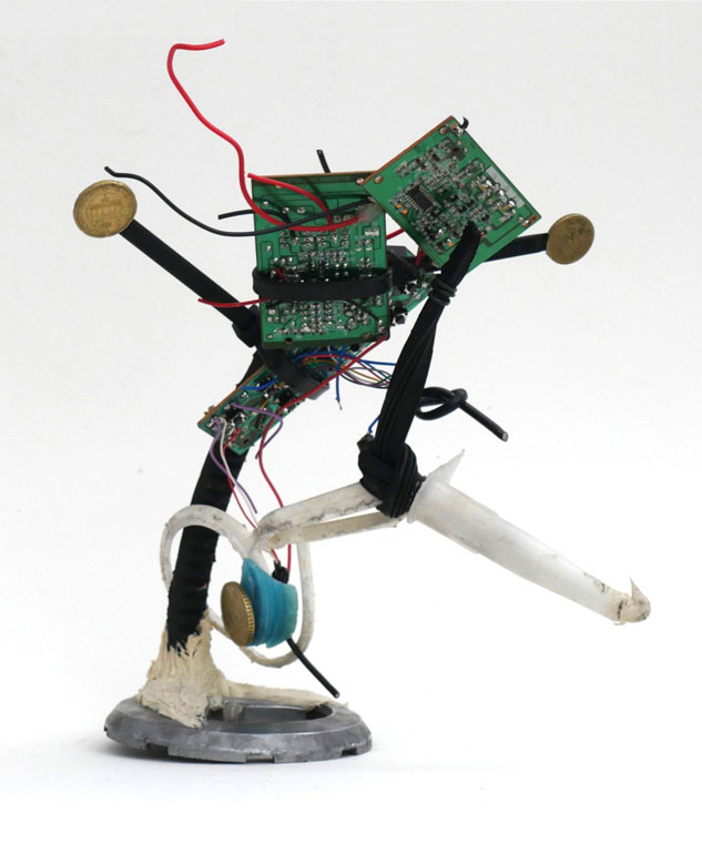 In questa sezione sono raccolte le sculture che Sandretti realizza seguendo lo stesso principio creativo delle installazioni effimere. A differenza di queste ultime, l’artista non opera sotto lo pseudonimo di Adolfo Amateis, ma firma le opere con il proprio nome, portando avanti una ricerca personale che conserva lo stesso spirito di improvvisazione e libertà.