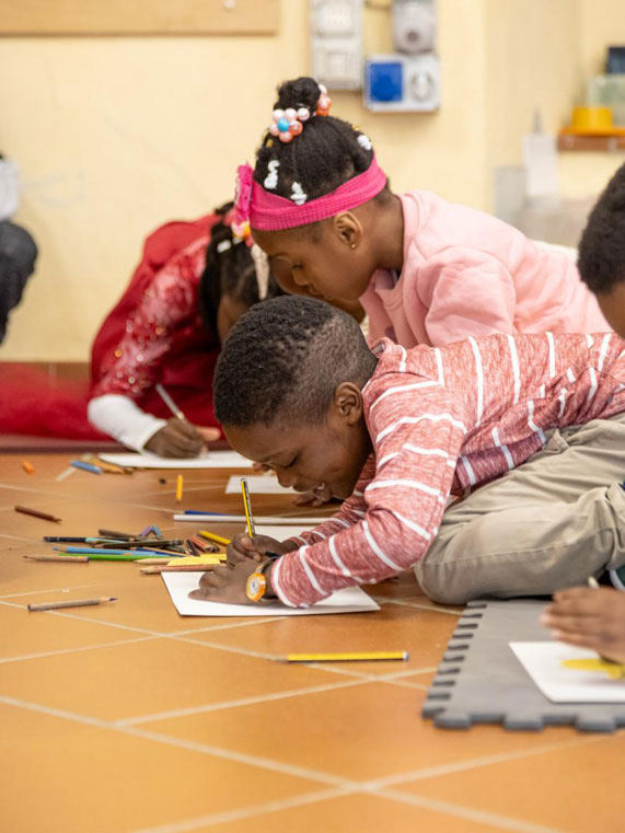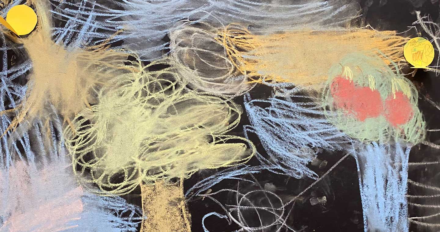 Partendo dal proprio seme con i gessetti colorati i bambini hanno disegnato i loro alberi che con chiome e radici si incontrano, si intrecciano, comunicano, formando un insieme di diversità.