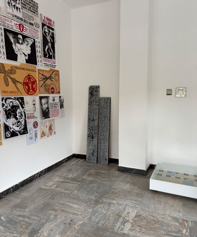 Sono, inoltre, esposti affiancati i due elementi superstiti del dialogo, ancora rinviato, fra arte contemporanea e patrimoni scientifici museali: il quaderno che apre il ciclo dell’Apocalisse (2008 - 2015) di Mauro Gottardo, realizzato a penna a sfera e marker, e la Apocalypse di Anselme Millet, realizzata con lapis su quaderno, nel 1938, da un ricoverato al manicomio di Collegno e oggi conservata al Museo di Antropologia ed Etnografia dell’Università di Torino. Le due opere, fitte di scritture affiancate da disegni, sono accomunate dal titolo e dall’attrazione dei due artisti “verso la smisuratezza e l’incommensurabilità”.